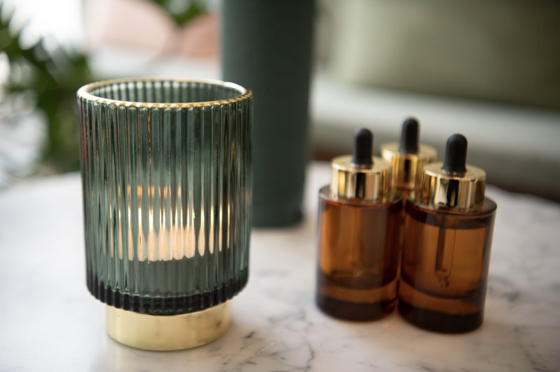 Des huiles essentielles sont utilisées pour leur senteur agréable, leurs effets relaxants et la purification de l’air ambiant.